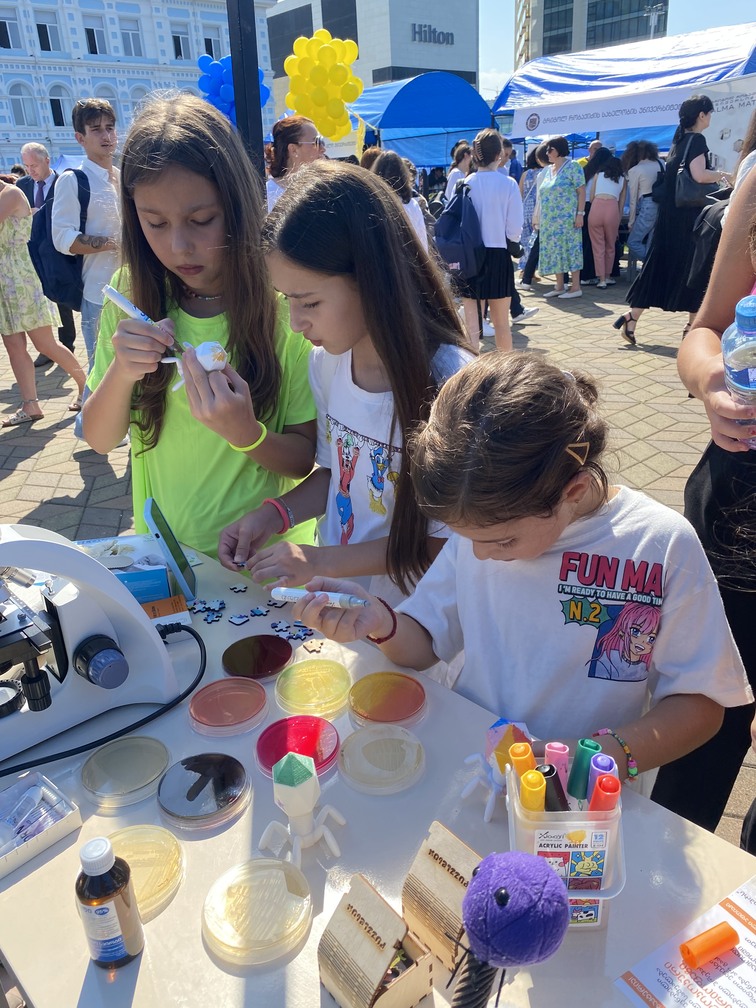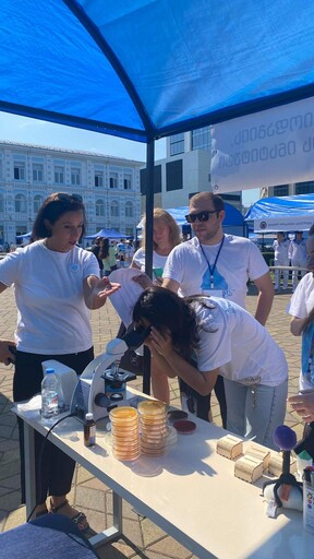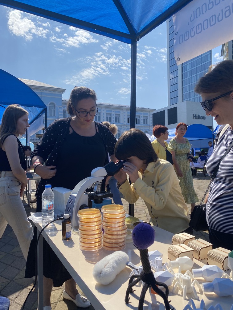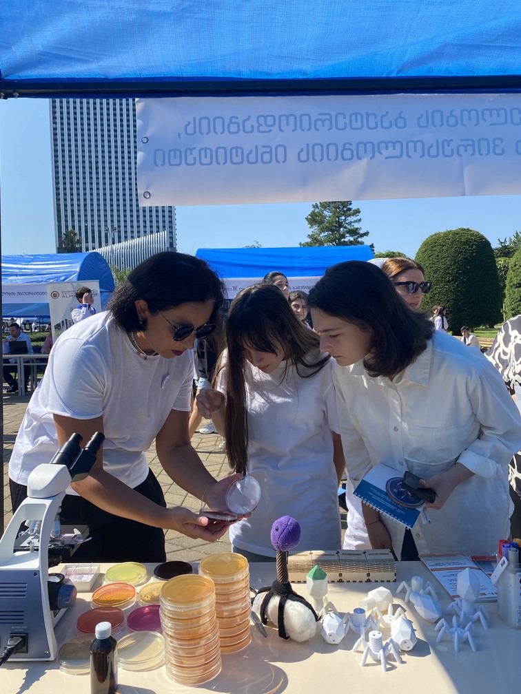 The institute’s activities were presented to the attending public with interactive, interesting, and entertaining way by the institute’s young scientists: Lika Leshkasheli, Tamar Tatrishvili, Marita Chichashvili, and Sofo Sturua.