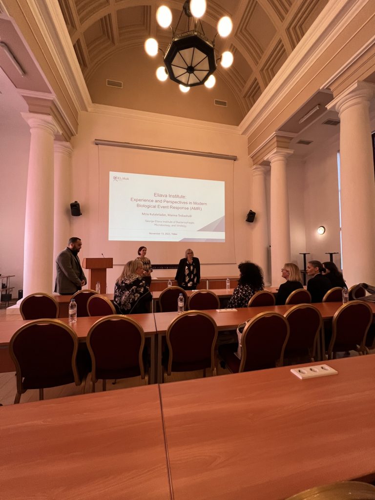 ამა წლის 13 ნოემბერს გ.ელიავას სახელობის ბაქტერიოფაგიის, მიკრობიოლოგიისა და ვირუსოლოგიის ინსტიტუტს ეწვივნენ მსოფლიო ჯანდაცვის ორგანიზაციის ევროპის ოფისის წარმომადგენლები: დოქტ. ლეშლი ოგილვი, დოქტ. ტინე იორგენსენი და დოქტ. ქეთი კანდელაკი. სტუმრები შეხვდნენ, ელიავას სახელობის ინსტიტუტის სამეცნიერო საბჭოს თავმდჯომარეს ბმდ. სოფიო რიგვავას, მიკრობთა ეკოლოგიის ლაბორატორიის ხელმძღვანელს ბმდ. მარინე თედიაშვილს, „ელიავა ბიოპრეპარატები“-ს დირექტორს ვახტანგ ფავლენიშვილს, მოლეკულური ბიოლოგიის ლაბირატორიის მთავარ მეცნიერ თანამშრომელს ბმდ. ლიზი ზალდასტანიშვილს და ელიავა ფაგოთერაპიის ცენტრის მთავარ ექიმს დეა ნიჟარაძეს.