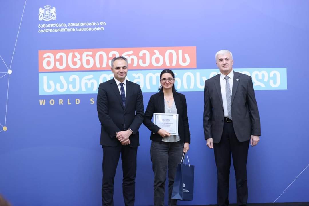 On November 10, in celebration of International Science Day, the Ministry of Education, Science, and Youth of Georgia honored Elisabed Zaldastanishvili, Head of the Molecular Biology Laboratory and Leading Scientist, for her outstanding contributions and active engagement in scientific projects and programs.